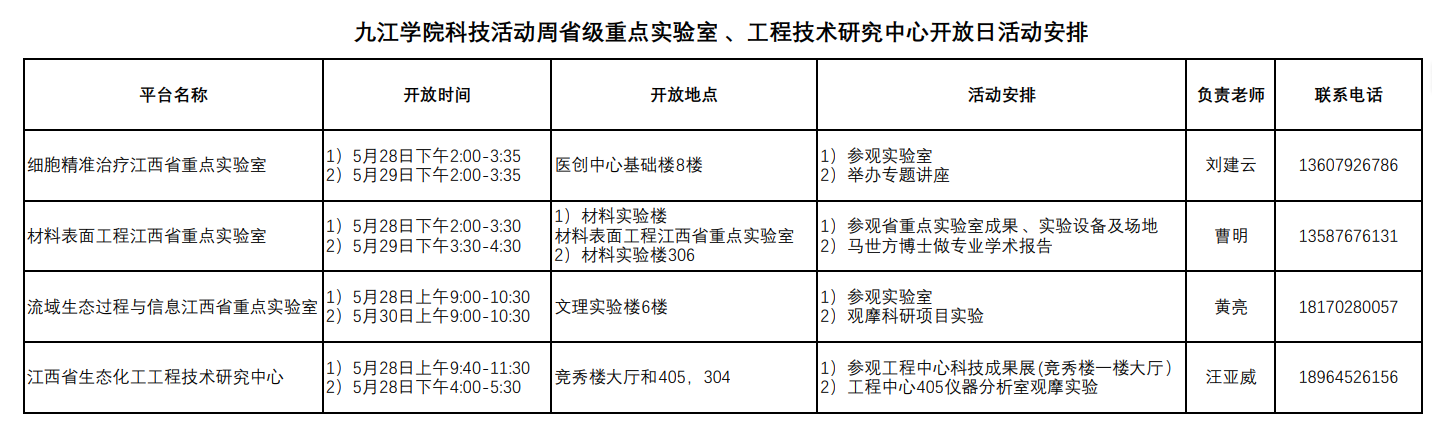 2. 省级重点实验室、工程技术研究中心开放日活动;