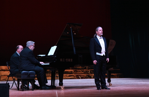 最后,在罗兰·普洛尔先生钢琴伴奏下,三位歌唱家一起演唱了在全世界广为流行的、也被世界著名歌唱家斯泰方诺、帕瓦罗蒂和卡鲁索演唱过的意大利民歌“我的太阳”,中文歌词:多么辉煌那灿烂的阳光,暴风雨过去后天空多晴朗,清新的空气令人心仪神旷……仿佛太阳灿烂辉煌,她的眼睛永远是我心中的最美。