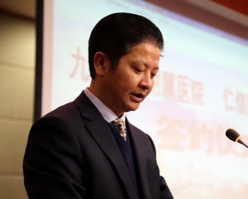 仪式上,校党委书记郑翔发表了热情洋溢的讲话。他说,我到九江学院工作后,经常想一个问题,全国大学有2000多所,新建本科院校有600多所,九江学院如何在短时间里崭露头角,赢得地位?我们党有一个好的传统,就是在敌强我弱的时候,在局部战场上形成优势,最后取得胜利。事情的道理是一样的。那么我校的局部优势要从哪里做起呢?两年前我们首先是抓特色教育,包括好习惯教育、国学素养教育和创业教育;其次是开展抢占学术制高点活动;第三就是柔性引进国内和国际高水平学术团队,与国内外高水平的专家教授合作形成我们的特色和优势。目前学校已经引进了三个高水平学术团队。前不久我们引进了德国音乐艺术家团队,将来有可能把国际声乐大赛引进到九江,之前这是不可想象的。这次我们引进了国际高端乳腺肿瘤一流团队,周永昌教授是亚洲在乳腺肿瘤治疗方面的一把手,Giuseppe Viale教授是欧洲在乳腺肿瘤治疗方面的一把手,还有两名日本著名教授,他们都是国际乳腺肿瘤治疗方面的著名专家。我们选择在局部进行高位嫁接,就有可能在短时间内形成别人也许用20年时间都无法赶上的优势。我们希望引进这个高水平的医疗团队,把九江地区乳腺肿瘤治疗带入一个高水平,希望九江地区兄弟医院的专家学者加入我们这个团队。今天的合作是一个开头,学校将办一个国际医疗算术研究所,目前世界上只有美国的哈佛大学、英国的剑桥大学才有这个研究所,我们是第三个。为了支持这个研究所,学校把南湖校区拿出来给研究所使用,将来以乳腺肿瘤治疗为起点形成我们的优势,这是学校的战略考虑。希望临床医学院/附属医院理解这个战略考虑,支持这个战略考虑,共同把这个研究所办好。