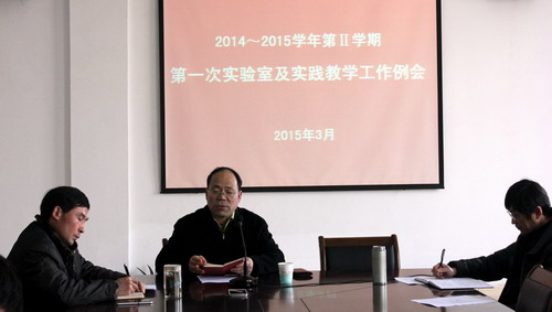 3月10日下午,学校在实验中心503会议室召开本学期第一次实验室及实践教学工作例会。纪岗昌副校长到会讲话,各二级学院分管实验室和实践教学工作的院领导、教务处、信息中心、图书馆及实验中心科以上干部参加会议,实验中心主任潘建华主持会议。