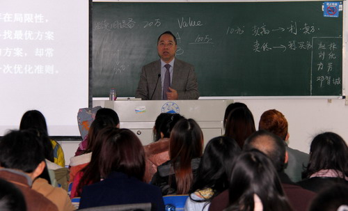 此次活动重点邀请了2014年新进教师参加,甘校长肯定了示范课活动的开展对青年教师成长的帮助,对陈瑶瑶老师的教学也予以了点评,认为陈老师的授课思路清晰、语言流利,教态自然大方,教学形式生动活泼,讲授内容信息量大,教学中没有局限于本门课程知识点的传授,而是将《财务管理》与经济学大课程相结合,拓宽了学生知识面。对于听课的同学们,甘校长鼓励他们要利用好业余时间多阅读、多学习、开拓视野,并将自己所学的专业知识运用到实践当中,以引导大家更好地学习和生活。