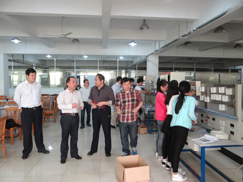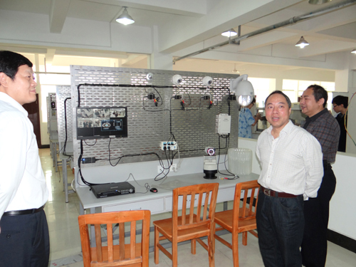 课程结束后,甘校长来到智能楼宇实训室,在查看了师生自己动手涉及制作的实训设备后,对电子工程学院师生的实践能力给予了很高评价。甘校长指出,电子工程学院有能力承担好学校正在安装的学生宿舍电子安全门和分析测试中心电子门、电子屏幕等电子设备的制作安装,此举既可以为电子学院师生提供实践平台,节约了施工成本,又方便了电子设备的维修维护。他勉励电子、土建、机材、信息等理工科学院积极主动地承担起学校部分工程的设计制作工作。