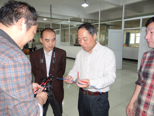 甘校长饶有兴致地观摩了同学们的实践操作,听取了实验室工作人员介绍的电工工艺实训课课程安排。在观看了同学们连接的电路后,甘校长称赞同学们电线连接得不仅合乎要求还很美观,他勉励电子工程学院要继续加强对学生动手能力的培养,鼓励同学们利用所学知识和技能创新、创业。