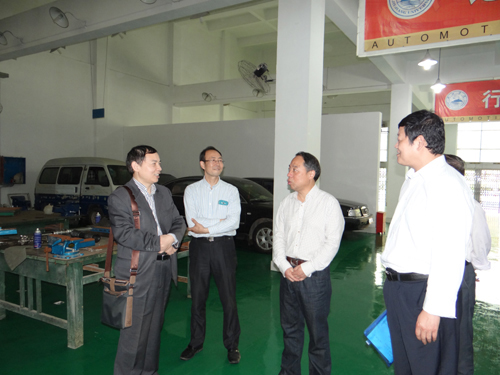随后,甘校长一行查看了机材学院汽车实训基地和数控分析中心。