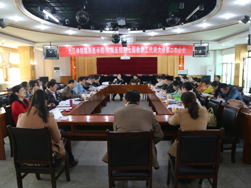 4月11日上午,临床医学院在庐峰校区大礼堂隆重召开第七届教职工代表大会第二次会议。副校长吴桃娥、工会主席金葆金莅临大会,临床医学院班子、各科室职工代表、列席代表、教职工、学生代表等1000余人参加了大会。会议由临床医学院党委书记张南华主持。