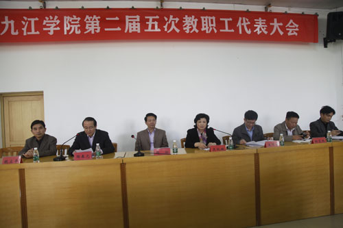 4月21日,学校在图书馆报告厅召开第二届教代会第五次会议,审议通过《九江学院章程》修订案。在家校领导郑翔、吴桃娥、王万山、陶春元、杨焱林、魏立平、杨耀防出席会议并在主席台就坐。会议由吴桃娥副校长主持。参加会议的有九江学院第二届教代会正式代表,应到代表243名,实到代表211名,超过全体代表人数的三分之二,符合法定人数。