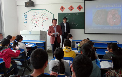 课后,郑书记对汤老师的授课进行了点评。他评价汤老师课讲得很透彻,PPT做得非常精美,上课中善于察颜观色,教态非常自然。郑书记还表扬医学院A1371班同学课堂纪律非常好,教室也很干净。他还幽默的对同学们说,同学们坚持天天跑操,就会有助于抵抗疟原虫的侵入。