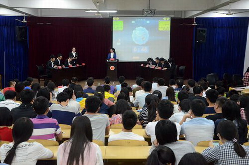 比赛中,双方围绕“争当创客,梦想与实干哪个更重要”进行了精彩的辩论。正方信息学院就“创客”的核心是创新,而梦想是创新的源泉展开己方观点,而反方土建学院则是从国家发展出发,指出实践是提高国家生产力的唯一途径。盘问环节中,双方辩手就“凝聚力及创新的能力”等方面唇枪舌战,你来我往,向对方辩手提出己方观点,掷地有声的语气、犀利有理的言辞将气氛一次次推向高潮,博得了在场评委及观众们的阵阵掌声。