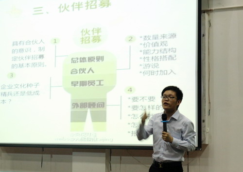 会上,外国语学院在校生、万亮电商总裁黄志翔分享了他的创业历程,从校外兼职到自己创业;从员工到总裁。他走过的不仅是一条创业之路,更是一条成长之路。他表示,自己和自己的团队将竭力帮助有志于创业的学弟学妹们走上创业之路。