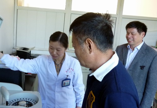 在检查中,杨副校长一边听取贾宗林院长汇报,一边巡视各科室的体检工作,同时看望慰问了医务人员,并强调,医务人员要加强服务意识,从细节出发进一步提高体检服务质量,把学校对教职工的关怀和温暖落到工作实处,好事办好。