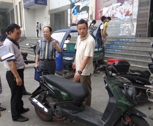 在四号服务楼二楼,纪副校长一行重点巡查了校外商户的文明经商情况。要求有关部门加强对商户的管理,改善四服楼二楼的环境卫生。纪副校长一行还就四服楼周边摊点摆放及摩托车进入校园情况等问题提出整改要求。