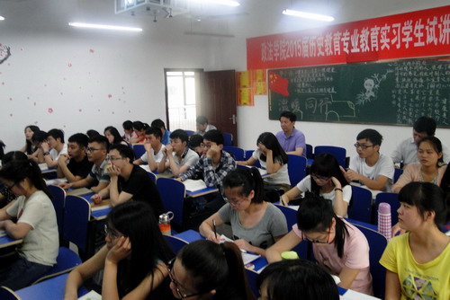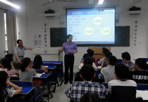 课后,郑书记进行了点评。郑书记说,颜老师的课讲得非常好,一是充分地发挥了他语言能力强的优势,他能把深刻的道理浅显化,把复杂的知识简明化,把严肃的内容愉悦化。二是他的课采取了主干加枝曼的方法,有枝有曼,对课本知识进行了延伸,听后使人深受教育。郑书记还就该班教室的环境布置进行了点评,并列举了学校有关案例请同学们从法律的角度进行思考。