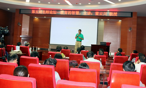 董云川教授主要研究方向涉及“高等教育学”、“管理哲学”和“生存智慧”三大领域。此次报告,董教授以自己多年来对高等教育的研究和一名高校教师的切身体会感悟出:做教育真好(功德感);做教育真累(责任感);做教育真难(艺术感)。品德高尚的教师对学生的教育力量是巨大而深远的,因而育人是点燃人心的功德事业。教师工作的“示范性”和学生所特有的“向师性”,使教师在学生心目中占有非常重要和崇高的位置,对学生有着熏陶诱导和潜移默化的影响,所以教师应有高度的职业责任感,这将支撑着教师的教育行为。教学是一门艺术,而艺术是无止境的,需要教师不断去创造、丰富,教师在教学过程中不仅要求学生“学会”,更要求他们“会学”,教学就是要使学生达到丰富知识、纯正心灵、舒畅胸怀的艺术境界。董云川教授还引用传统文化中的处世哲学对教师个人心理状态进行了分析,鼓励教师应拥有积极进取的人生态度,将教育事业当作最崇高的工作与最大乐趣,并为之不懈努力和追求。