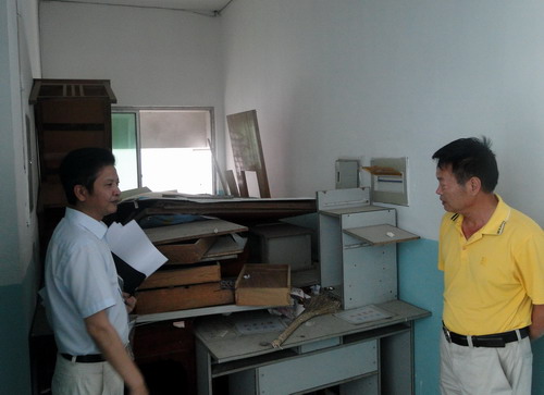 在庐峰校区一教楼,杨副校长一行从一楼到八楼每层楼都进行了实地察看,发现有些教室里堆放了许多报废的旧桌椅和实验设备时,杨副校长要求临床医学院会同医学部,尽快将这些物品搬离。要求基建处对各楼层内外墙进行粉刷,更新窗帘,对有些破旧的门进行更换,确保整栋楼按时按质按量完成装修。