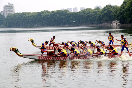 6月19日下午2时58分,学校两支龙舟队来到浔阳城美丽的南门湖畔,举行庆端午龙舟表演活动。队员们身着整齐的比赛服,个个精神抖擞,做好了赛前的各项准备工作。甘筱青校长出席活动并作讲话,副校长陶春元,宣传部、体育学院、八里湖校区管理办公室负责人,以及教练员、媒体记者和部分市民参加了活动。