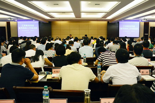 7月2日—3日,省教育厅在南昌航空大学举办全省教育系统新闻宣传工作培训班,集中培训全省高校宣传信息业务骨干,研究部署2015年全省高校宣传思想工作任务。省委教育工委书记黄小华出席并作《贯彻落实 落实中办〔2014〕59号和赣办〔2015〕1号文件精神 开创全省高校宣传思想工作新局面》专题讲座,省教育厅巡视员周金堂主持。全省高校分管宣传工作的校领导、党委宣传部长及宣传信息员,各设区市教育局、省直管县教育局宣传信息员,委厅机关各处室、直属各单位宣传信息员200余人参加。我校副校长杨耀防出席会议,党委宣传部副部长何桂林,党委宣传部文明办副主任吴彭年一同参加了本次培训活动。