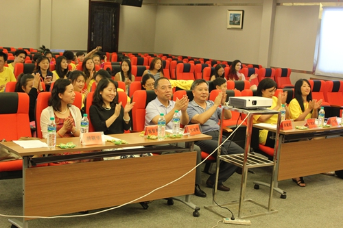 协办方九江学院的甘筱青校长作了讲话。他首先对本次夏令营的圆满成功表示衷心的祝贺,并对中国华教育基金会、江西省外事侨务办公室的信任和支持表示感谢。甘筱青校长简单概括了九江风光,庐山风光,介绍了九江学院的基本情况,并且希望:“营员们在这为期十二天的行程中,通过文化课的学习和亲身的文化体验加上观光游览,能铭记处于庐山之麓,长江之滨,鄱湖之畔的九江,并且能记住千年文脉,百年办学的九江学院。”他表示,近几年,九江学院在华文教育方面做了一些力所能及的工作,并将继续为推广华文教育、传播中华文化尽心尽力地做出自己的贡献。希望大家有机会能再来江西九江感受这里的历史文化,把祖籍国的文化带回到居住国发扬光大,让更多的外国人了解中国文化。”