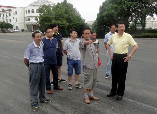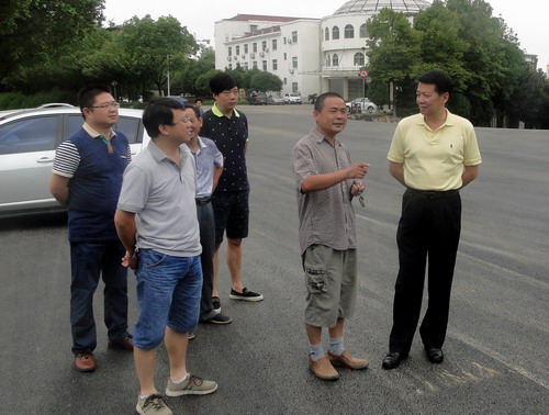 郑书记先后来到田径场和训练馆之间路段、学生活动中心前和教工三村施工现场,仔细察看了改造后的道路,听取了基建处关于校园道路改造工程进展情况和施工过程中出现的一些新情况的汇报,并对学校暑期道路改造工程提出了具体指导和要求。