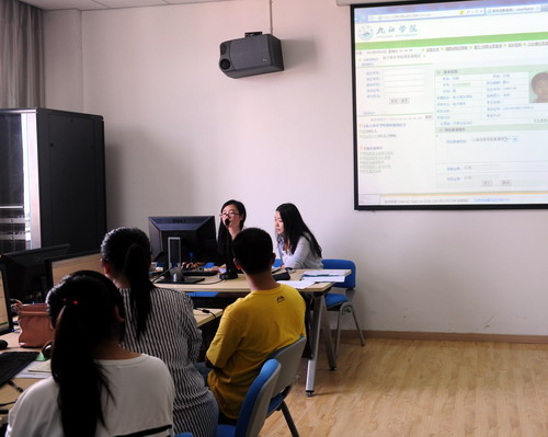 纪副校长首先来到603机房,看望了各个学院正在参加迎新工作培训的各位老师,并对迎新培训工作给予指导与肯定,同时要求大家在迎新过程中做到热情、细心、周到,圆满完成迎新工作。
