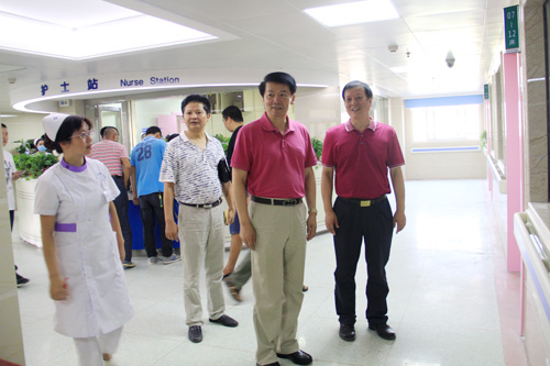郑书记先后来到临床医学院/附属医院西院正在试运行的南门特色门诊楼乳腺肿瘤科、装饰一新的住院部十楼病房等处,察看了规划合理、流程科学的南门诊室、手术室和温馨舒适、干净整洁的十楼住院病房。看到临街门诊门头用法文书写的“圣味增爵医院”和“1877”字样,郑书记非常高兴,认为理解了他的提议,富有历史的厚重感。