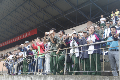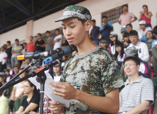 大会会场雄伟壮观,鲜艳的红旗在队前飘扬,雄壮的军歌在空中回荡。“军纪如铁,意志如钢,严格要求,勇争第一”、“激情飞扬,超越梦想、挑战极限、铸就辉煌”等大幅标语悬挂在田径运动场周围,94个排列整齐、精神抖擞的学生方队,迎着朝阳、激情满怀地等待着校领导和九江军分区首长的检阅。校领导甘筱青、吴桃娥、纪岗昌、王万山、陶春元、杨焱林,魏立平、杨耀防、九江军分区政委汪开华大校、九江军分区参谋长封志宏大校、空军场站参谋长张武中校及学校各二级学院党政负责人和有关部门负责人出席了大会。副校长王万山主持了2015级新生军训表彰大会。