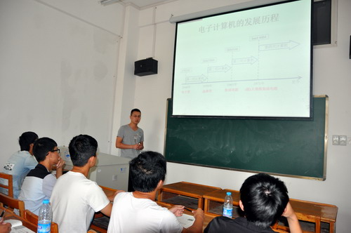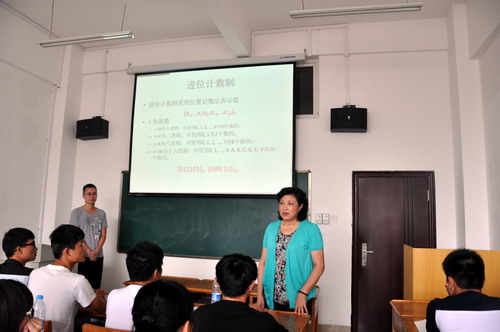 冷老师首先回顾了上节课讲解的电子计算机的发展历程、冯••诺依曼原理等知识点,然后开始讲解本次课的内容:认识计算机,主要从宏观和微观两个方面进行阐述,宏观方面讲解了计算机学科研究的问题,微观方面讲解了计算的数字化基础。在讲解理论知识的时间,辅以汉诺塔问题、货郎担问题等实例加以说明,以设问的方式带动学生思考,以针对性的例题帮助学生加强理解。