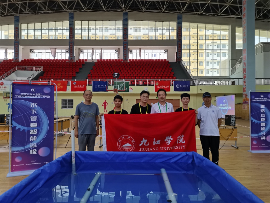 2022年,满达虎带领四位同学参加第六届江西省大学生工程训练综合能力竞赛“智能+”赛道“水下管道巡检”赛项,由于该赛事是多学科知识交叉融合的竞赛,难度较大,面临巨大的挑战和工作量,满达虎带领队伍日夜不停地进行设计与实验。在临比赛之际,满达虎和团队成员们更是一起废寝忘食、一轮一轮地反复打磨,终于以省赛一等奖第一名收官,获得了评委和观众的一致好评,团队也得到了江西教育电视台的采访。但在国赛前夜的调试过程中,发现参赛作品不能稳定地完成既定任务,团队成员的心情一下跌入了深渊。得知情况后,满达虎马上稳定队员的情绪,指导团队一步一步排除有可能出现故障的原因,经过一遍遍排查,终于在凌晨4:00多解决了问题。经过短暂的2个小时休整,团队成员出现在了国赛的现场。在国赛时,向评委们完整展示了设计作品的功能,最终在中国大学生工程实践与创新能力大赛“智能+”赛道“水下管道巡检”赛项中荣获银奖(全国第十名)。经过这样真实项目的历练,学生动手能力和综合素质得到明显提升。