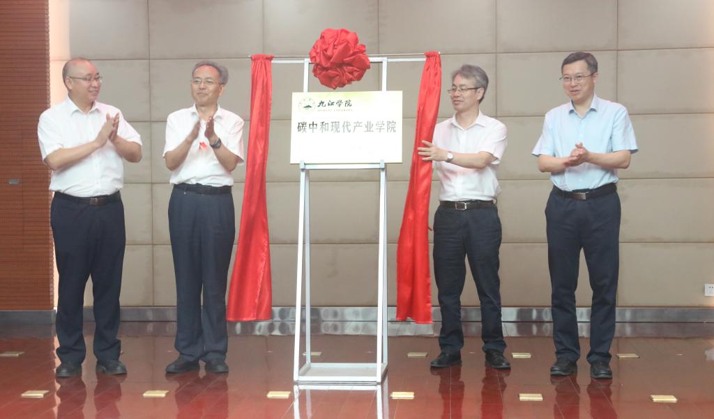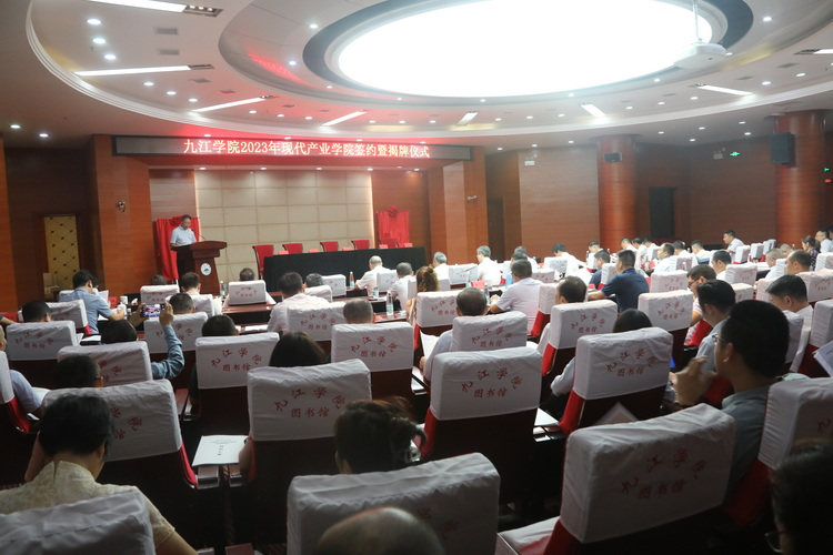 9月18日上午,学校在逸夫图书馆报告厅举行九江学院2023年现代产业学院签约暨揭牌仪式,九江学院与九江市濂溪区、柴桑区、瑞昌市、鄱阳湖生态科技城及20家企业合作共建的大数据产业学院、碳中和产业学院、冶金与材料工程产业学院、数字经济产业学院、庐山生物与医药产业学院正式揭牌成立。江西省教育厅二级巡视员雷杰华、江西省工信厅二级巡视员黄美昌、九江市人民政府副市长鲍成庚、九江学院校长陈小林、副校长王万山等出席仪式,九江学院副校长严平主持仪式。