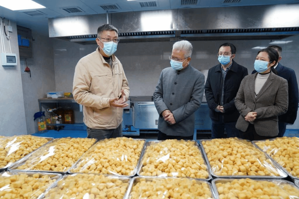 随后,考核组一行现场查看了紫薇园校区学生第二食堂中央厨房,重点查看了米饭生产线、豆制品生产车间、白案流水生产线等生产工艺流水线和质量监督检查办公室等区域。