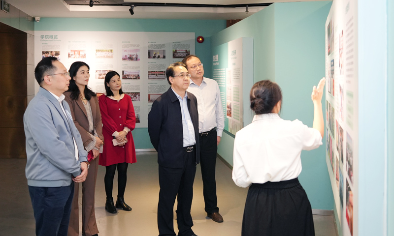 李明斌一行参观了广州医科大学科研实验中心、校史馆、抗击非典纪念馆等处,并同该校校长赵醒村、副校长周麟,以及教务处、医院管理处、科研处、办公室等部门负责人就办学理念、医学教学、医学生临床实践与考核等内容开展了深入交流。