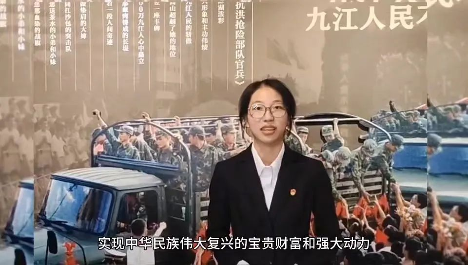 结合学习领悟习近平总书记在江西考察时和进一步推动长江经济带高质量发展座谈会上的重要讲话精神,作品《凝心聚力铸薪火抗洪精神永传承》以1998年全国多区域大规模降雨所致特大洪水为背景,创作团队前往九江抗洪纪念馆、长江国家文化公园九江城区段,讲述了处于重要抗洪节点的江西九江,在长江大堤决口后,党和人民齐心协力抗洪救灾的故事,以及伟大抗洪精神在当代中国的生动写照和接续传承。作品缅怀了在抗洪斗争中英勇献身的人民英雄,宣传弘扬了在抗洪斗争中诞生的伟大抗洪精神。