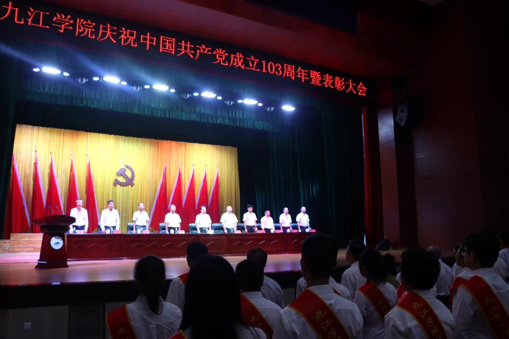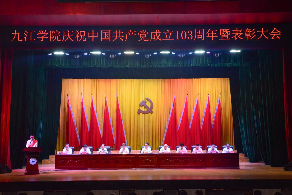 7月1日上午,九江学院在学校大礼堂隆重举行庆祝中国共产党成立103周年暨“七一”表彰大会。校党委书记李明斌出席会议并讲话。党委副书记、校长陈小林主持会议。党委委员、副校长王殿元宣读表彰决定。副校长严平,党委委员、副校长查振华、李松志、雷志强,党委委员刘遵海、刘平、杨杰出席会议。