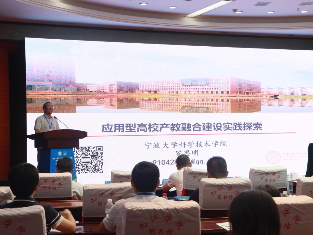 罗思明作了题为《应用型高校产教融合建设实践探索》的报告。报告以宁波大学科学技术学院在应用型高校产教融合建设方面的真实案例,描绘了地方应用型高校有效衔接产业链、教育链、人才链与创新链的基础上,深入、持续地推进产教融合过程中精彩篇章。