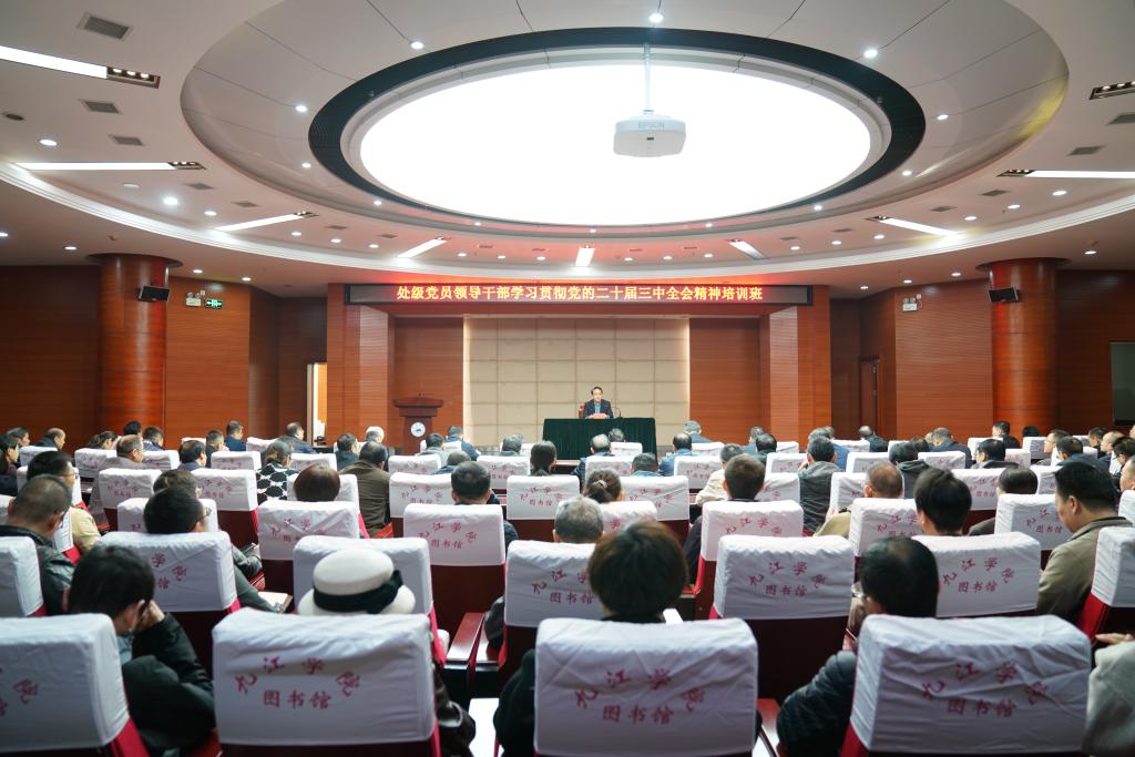 为深入学习贯彻党的二十届三中全会精神,全面领会习近平总书记关于全面深化改革的一系列重要思想和科学论断,准确把握进一步全面深化改革的主题、重大原则、重大举措和根本保证,九江学院于11月21日至24日举办了处级党员领导干部学习贯彻党的二十届三中全会精神培训班。培训通过专题辅导、分组研讨和个人自学等多种方式开展,着力提升学习实效,共有163名处级党员领导干部参加。