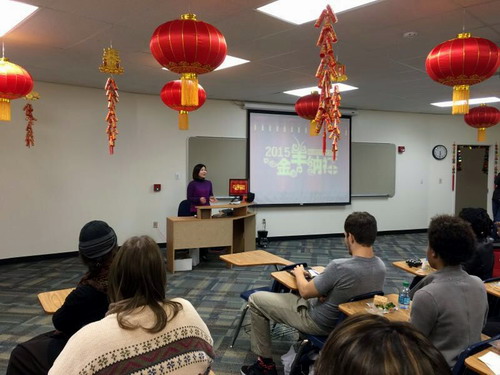 美国当地时间2015年2月18日晚,正值中国年味浓浓的大年三十,萨凡纳州立大学孔子学院师生80余人在精心布置充满喜庆的孔子学院教室欢聚一堂,共庆中国的传统节日——春节!
