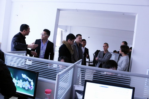 随后,韩院长、杨书记一行在王玉亮董事长的陪同下参观了万亮电商的吃货联盟、味觉商城、客服部、商品展示厅以及大学生创业就业孵化基地等部门。参观过程中,杨杰书记对黄志翔的创业热情表达了充分的肯定,希望他在创业路上走的踏实、走的长远。