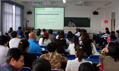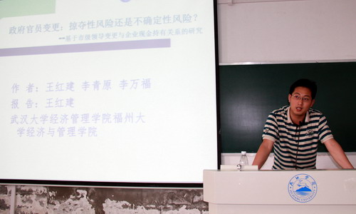 5月6日下午,会计学院在立信楼404举行立信学术论坛。此次论坛邀请了武汉大学经济与管理学院王红建博士担任主讲,主题为“政府官员变更:掠夺性风险还是不确定风险?——基于市级领导变更与企业现金持有关系研究”。讲座由会计学院院长陈小林主持,会计学院广大师生全程聆听了讲座。