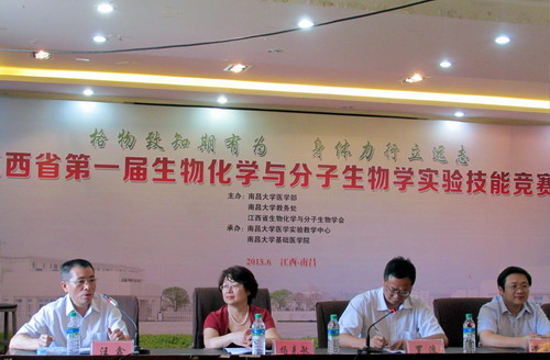 6月6日上午,开幕式上,基础医学院汪鑫副院长、江西省生物化学与分子生物学会理事揭克敏和江西中医药大学副院长孙有智做了报告,他们均评价了大赛的意义:医学生物化学与分子生物学是医药学的主干课程,举办生物化学与分子生物学实验技能大赛对于培养学生的动手能力具有促进作用,此外有利于学生深刻理解分子医学知识及个体化医疗的意义。