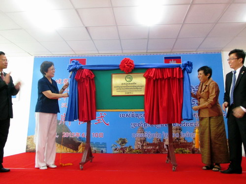 仪式上,彭萨格那部长,布建国大使等共同为“金边中国文化之家汉语中心”成立揭牌。