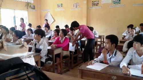 本着认真负责,勇于奉献的精神,中文系招生团队拜访了吾哥比里高中、吾哥比里洪森高中、大山高中、大山高中等七所学生数量较多,影响力较大的学校。在首日的宣传过程中,招生团队通过打横幅、发传单、做宣讲、答疑问等多种形式向学生全方位介绍攻读汉语本科的必要性和重要性。通过向学生展示图片的形式,详细介绍了孔子学院奖学金、汉语桥、HSK考试等重点项目,并通过分析描述学习汉语的就业、留学前景以及棉芷大学中文系的强大的汉语师资力量打消了学生的疑问和后顾之忧,激发了许多学生学习汉语的热情和信心,有不少学生当场登记自己的个人信息,纷纷表示一旦高考通过就会立刻报名攻读汉语本科学位。在随后的两天内,我们又陆续到卜迭棉芷省省会的是士芬高中、KLA KOUN高中、SAMDACH OV和OAM BEL高中进行宣讲,同样取得了非常好的效果。在整个宣传过程中,中文系招生的组员的奉献精神非常令人感动,他们不辞劳苦,每天早上6点就准时赶到学校集合,工作非常积极。有的学生得知要前往各个学校缺少交通工具,就主动开自己的车载着组员们前往各个学校,并谢绝交通费用。