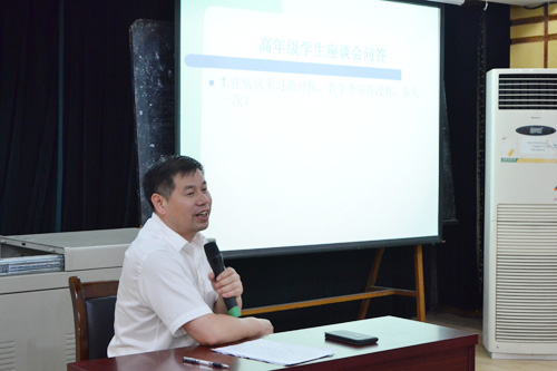 晚上,贾宗林副院长主持了学生座谈会。2011-2013本科实习生及在校生参加,大家针对主要涉及实习生管理、实习生教学活动、出科考核、学生志愿者服务、培养方案制定和学生意见等27项问题进行讨论,发言积极,气氛活跃。