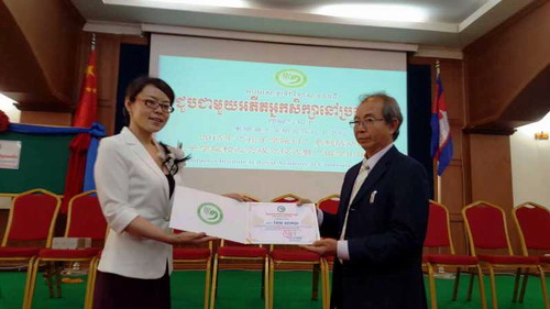 最后,韩静及翁奔共同为“柬埔寨王家研究院孔子学院校友会”揭牌,校友会将组织孔子学院学员的各种不定期联谊活动。
