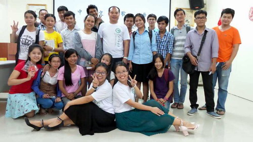 10月9日,柬埔寨王家研究院孔子学院每周文化活动——中文歌曲联谊会在孔子学院大楼二楼多媒体放映室举行。孔子学院中方院长出席本次活动,活动由汉语教师志愿者方茜、岑菊妹组织,汉语教师志愿者、孔子学院学员约70余人参加了联谊会。