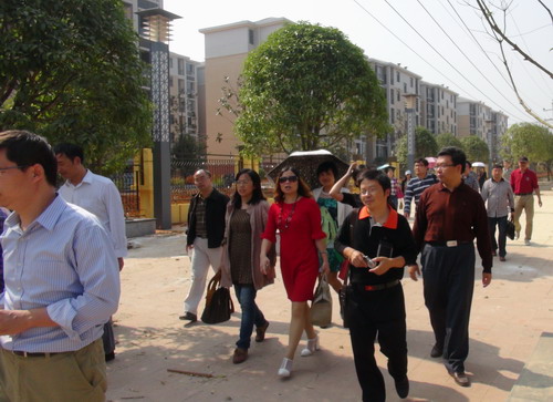 随后,考察团一行参观调研了武宁县武安锦城安置小区建设情况。 坐落在县工业园区的武安锦城安置小区,是武宁县推动镇村联动,实施移民扶贫整体搬迁的重点民生工程,项目总规划建设用地900亩,总建筑面积66万平方米,总投资10.7亿元,主要安置武宁县地质灾害区、深山区、库区回水区、生态敏感区居民,全部建成后可安置移民和困难群众7000多户、30000多人。为了方便居民的生活需求,该小区还配备了学校、医院、社区服务中心、菜市场、综合商场等。
