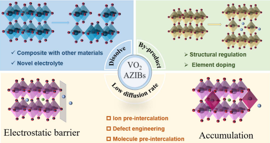 二氧化钒因其独特的物理化学性质,作为锌离子电池(AZIBs)的正极材料已被广泛研究,并展现出巨大的应用潜力。尽管二氧化钒具有诸多优势,但它也面临着与其他金属氧化物正极材料类似的挑战,例如结构稳定性差、循环性能下降以及活性位点的损失,这些因素共同限制了其在AZIB中的广泛应用。然而,对其研究进展、挑战和商业前景的全面系统分析仍然有限。本文重点阐述了二氧化钒晶体结构与锌离子储能性能之间的构效关系,深入探讨了其储能机制,并强调了其在能量转换和存储中的关键作用。