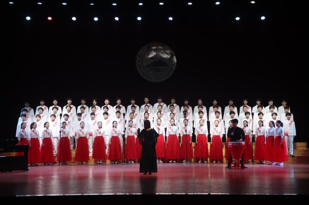 为深入学习贯彻落实党的二十大精神,进一步弘扬“爱国、进步、民主、科学”的五四精神,引领青年学子赓续红色血脉、勇担时代使命,4月27日晚,由九江学院学生工作处、团委主办的以“红歌铸魂·青春飞扬”为主题的五四青年合唱比赛在学校大礼堂举行。校党委委员、副校长吴维勇出席活动并为获奖单位颁奖。学校相关职能部门负责人、二级学院党政负责人、师生代表1000余人共同观看这场青春盛宴。