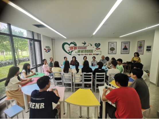 在“525心理健康日”来临之际, 九江学院关工委“心灵驿站”走进紫薇园五栋“一站式”学生社区,开展“倾听你的心声”活动。九江学院关工委执行主任吴桃娥教授携七名退休老教师、老专家与建工学院青年学生对话成长,倾听学生心声,助力他们以积极健康的心态迎接成长路上的挑战。