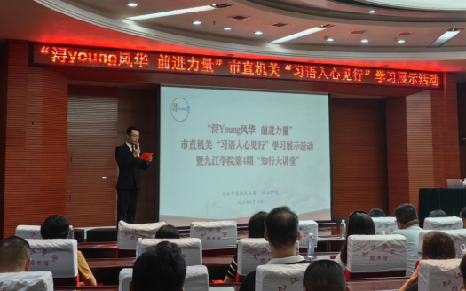 为深入学习贯彻习近平新时代中国特色社会主义思想,引导广大党员干部树牢“四个意识”,坚定“四个自信”,坚决做到“两个维护”,锚定目标、实干争先,为高标准高质量建设长江经济带重要节点城市、推动学校高质量发展凝聚更大合力,6月13日下午,学校与市直机关工委联合举办“浔young风华 前进力量”市直机关“习语入心见行”学习展示活动暨九江学院第4期“知行大讲堂”。