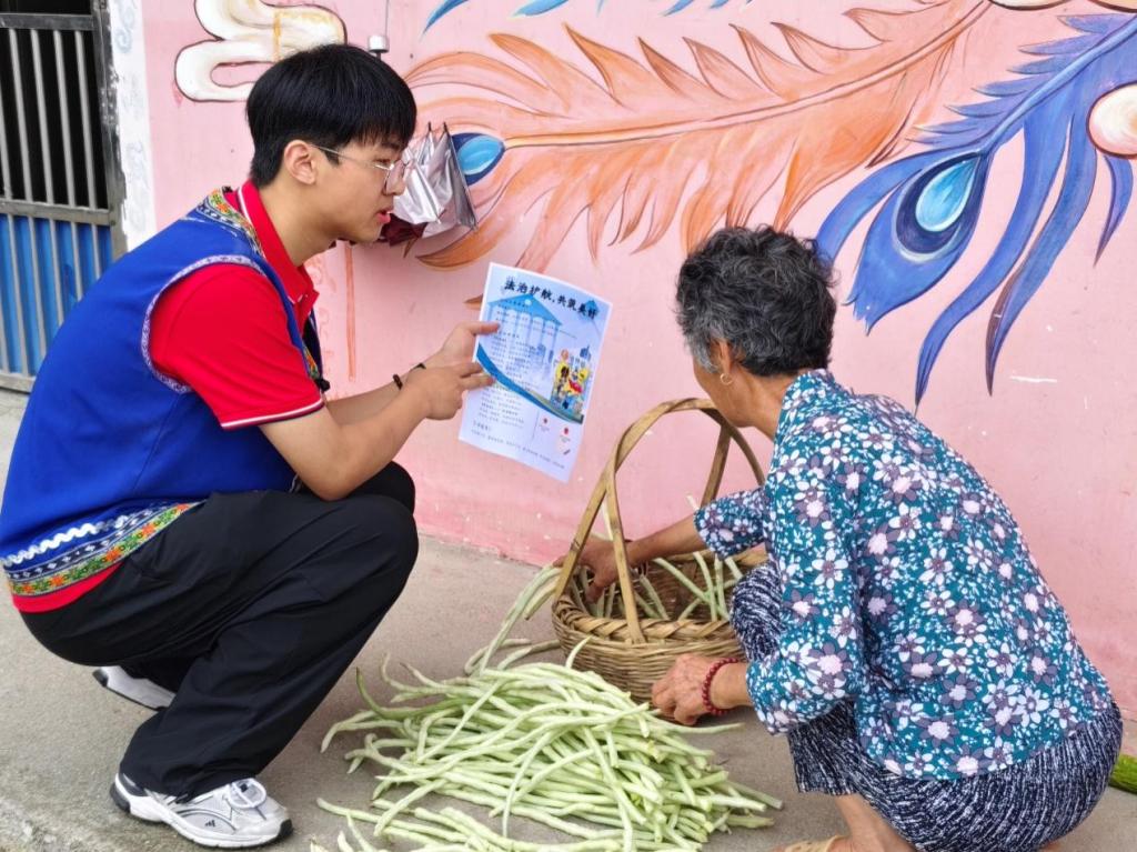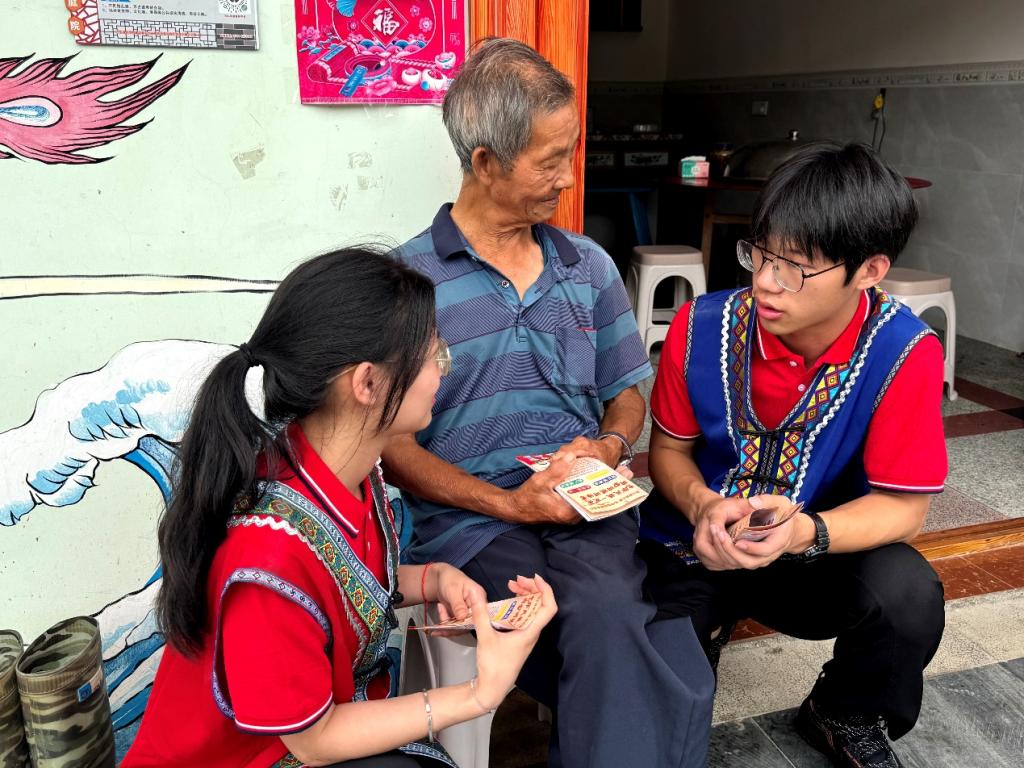 实践队走进金竹畲族乡民族学校,与当地学生齐唱红歌、共跳竹竿舞,以趣味党史课传承红色基因。队员们还在乡政府报告厅为留守儿童举办防溺水、普通话推广及“AI赋能乡村振兴”主题宣讲,并捐赠学习用品与文体器材。在彩绘村走访调研中,队员们发放了法治与防溺水宣传手册,以“拉家常”方式普及防诈知识,用实际行动助力民族融合与乡村治理。