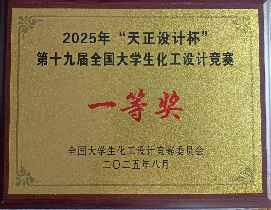近日,由中国化工学会、中国化工教育协会主办,天津大学承办的2025年“天正设计杯”第十九届全国大学生化工设计竞赛全国总决赛在天津举行,由我校化学化工学院彭兵龙、钟淑敏、廖建飞、邬佳琴、袁菁组成的“乘砜破浪”队设计作品——“中国石化镇海炼化公司2万吨/年二甲基亚砜生产项目”获得全国一等奖。这是我校连续第四年获得这一殊荣。